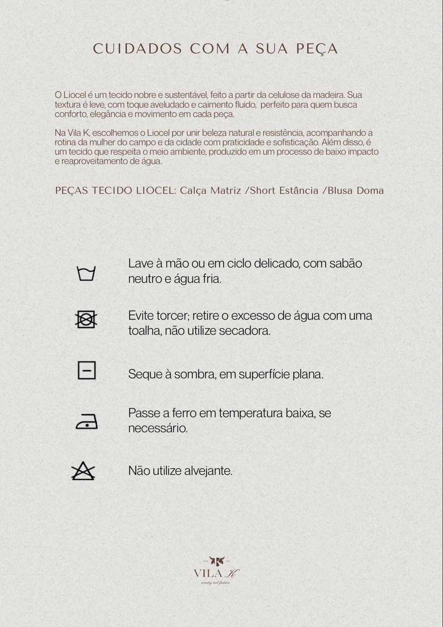 Produzida em tecido liocel, a Blusa Doma oferece uma textura suave e frescor incomparável, ideal para o clima brasileiro.